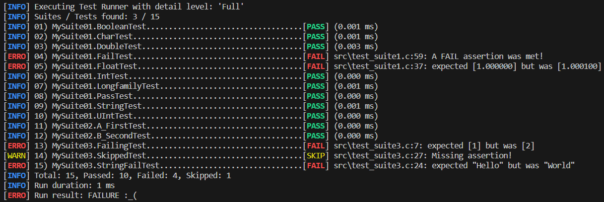 Here, an example of the default report format, which features pretty printing with ANSI support: